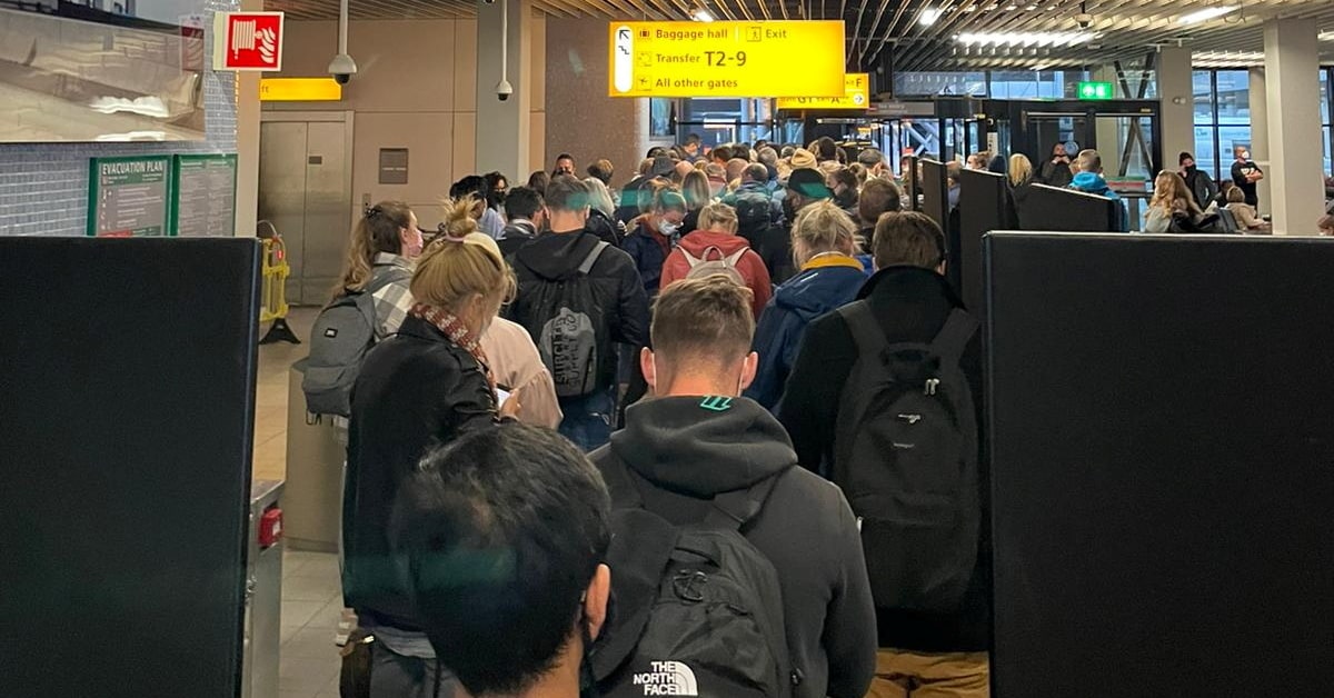 Unos 600 pasajeros llegaron al aeropuerto Schiphol de Ámsterdam en dos vuelos de KLM el viernes y luego se enfrentaron a horas de retrasos y pruebas debido a preocupaciones sobre la nueva variante del virus.