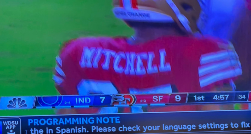 La semana pasada, NBC Domingo por la noche de fútbol Emitida con audio en español para muchos espectadores, la filial local WDSU (Nueva Orleans) ha sido objeto de críticas especiales allí (aunque no es la única emisora en la que se ha informado). Este domingo, vuelve a suceder durante WDSU Partido Indianapolis Golds-San Francisco 49ers, Al menos para quienes reciben la estación a través de AT&T U-Verse. El feed de NBC en inglés de WDSU funcionó bien para otros proveedores, incluido el paquete de TV de YouTube de este autor, pero a menudo les pedía que restablecieran los gráficos (ver arriba), lo que indica que estaban al tanto de un problema de idioma con AT&T U-Verse y la configuración de idioma. . Aquí hay algunas quejas al respecto: