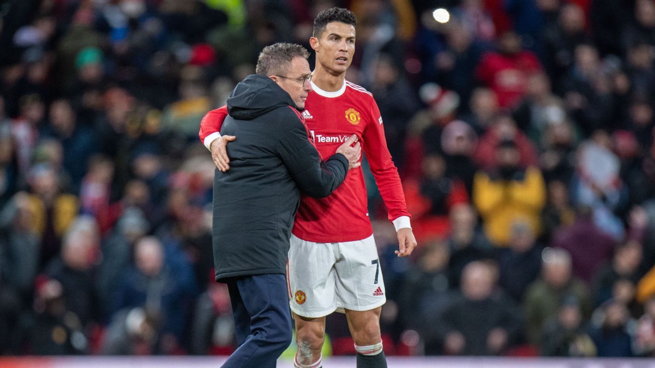 delantero del Manchester United cristiano Ronaldo El entrenador interino Ralf Rangnick lo ha respaldado para que le vaya bien en la Premier League, pero dijo que el alemán necesita tiempo para descansar y mejorar el desempeño del equipo.