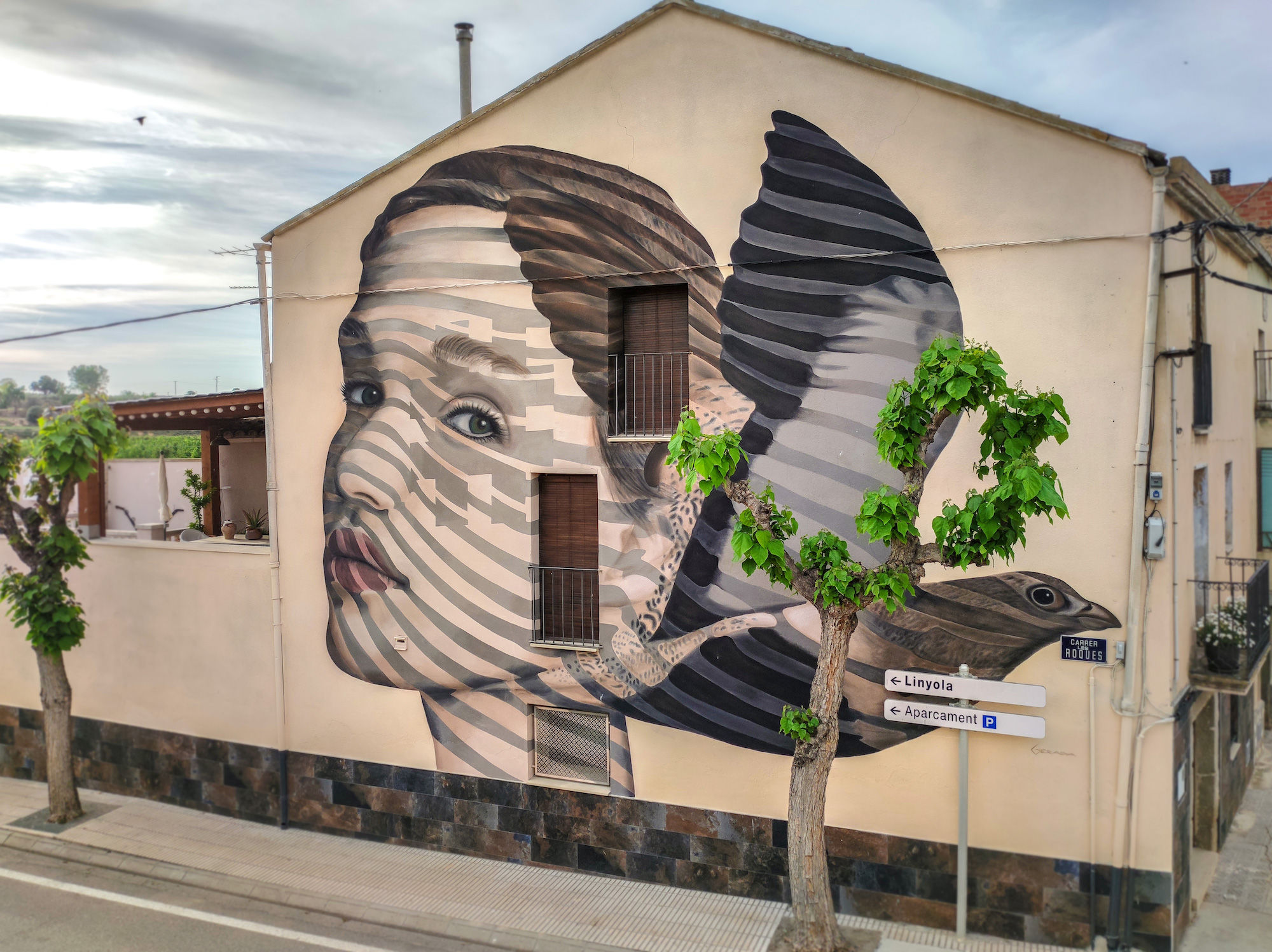 El mural se sitúa en el lateral de un edificio de viviendas a la entrada del pueblo, sito en la esquina con la calle de Roques. El mural de Gerada mide aproximadamente 12m x 10m y fue creado con pintura látex para exteriores.