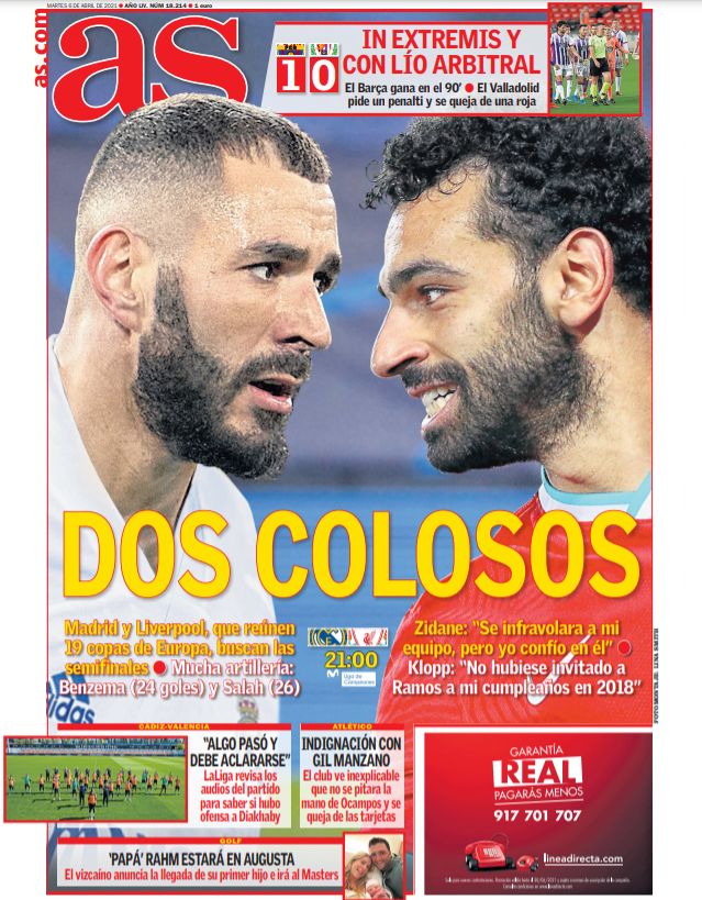 Los títulos de la primera página del lunes están en inglés de Marca, Diario AS y Mundo Deportivo.