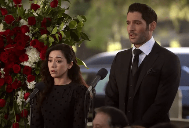 Cuándo Lucifer La temporada 5 acogió el funeral del personaje de larga duración, con Amy García casi terminando de prepararse para su canción a dúo con Tom Ellis.