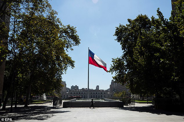 La mayor parte de la liberación de la vacuna contra el virus corona del país no ha logrado prevenir la propagación del Govit-19 porque la mayor parte del país está encerrado. Imagen: Un hombre camina frente a la bandera nacional de Chile antes del inicio de un período aislado para frenar la propagación del virus corona, el 20 de marzo de 2021, en una plaza frente al Palacio Presidencial de La Moneta en Santiago, Chile.