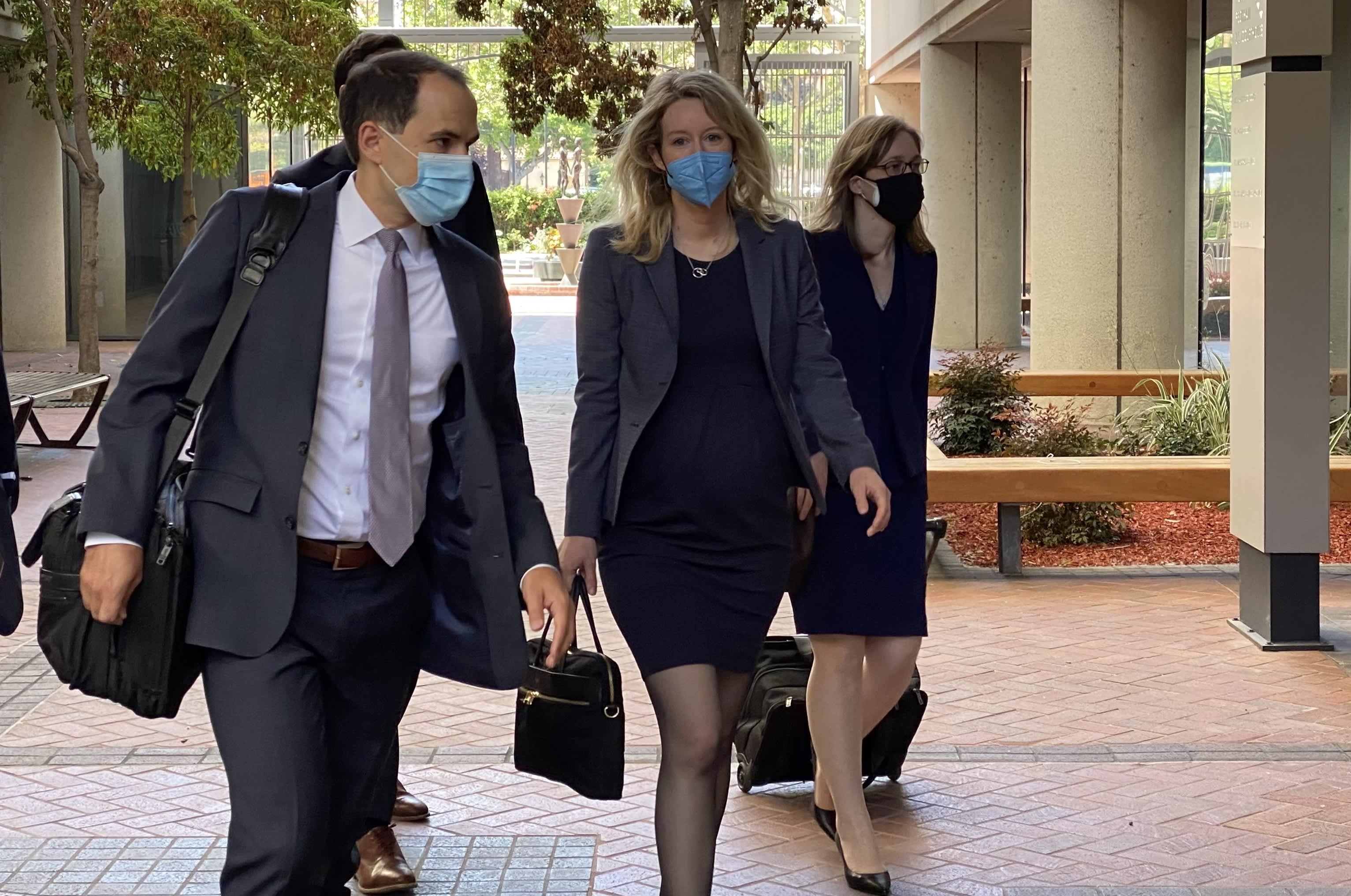 Elizabeth Holmes, ex directora ejecutiva de Theranos, sale de la sala del tribunal donde será juzgada por fraude, el 6 de mayo de 2021.