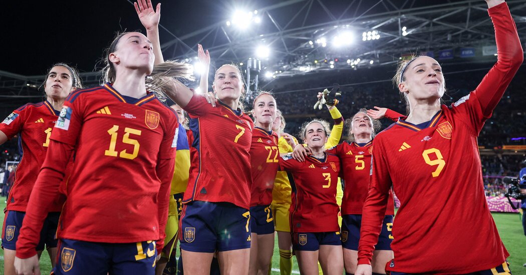 Y sin embargo, y sin embargo, al final de la Copa Mundial Femenina más grande, ancha y profunda, las jugadoras de España estaban de pie en el podio, con confeti dorado volando sobre sus hombros, cubiertas de humo pirotécnico acre, con las manos entrelazadas. alrededor de la taza por primera vez.
