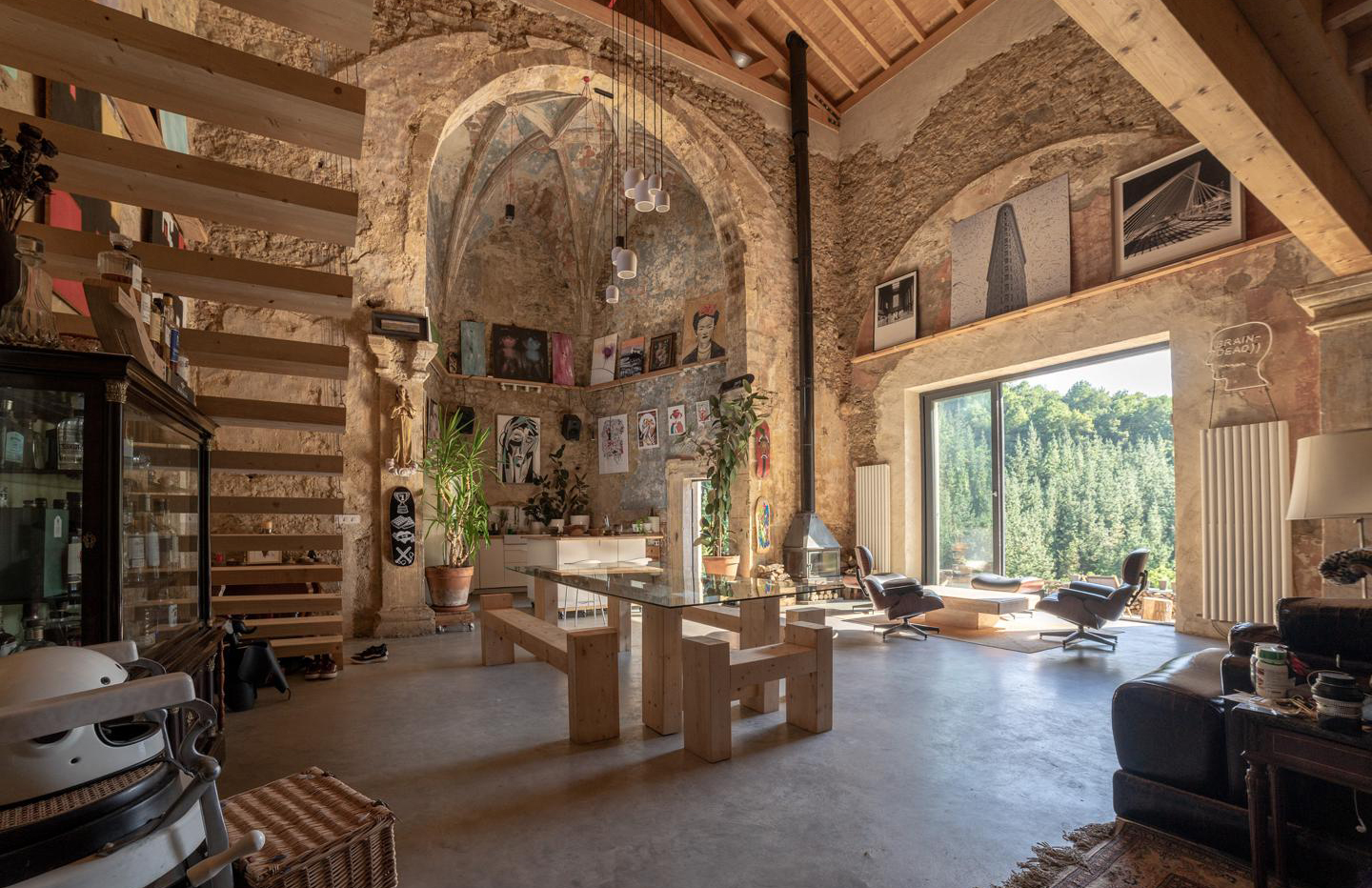 Eche un vistazo al interior de esta iglesia, que fue restaurada en el siglo XVI, y ha sido reconstruida en una asombrosa casa de tres dormitorios que mezcla huesos renacentistas con acabados modernos en Piscia, Vasco.