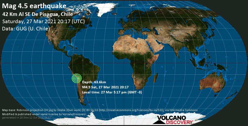 4.5 63 kilometros Los 44 km al NNE de Iquiquin, Chile. USGS