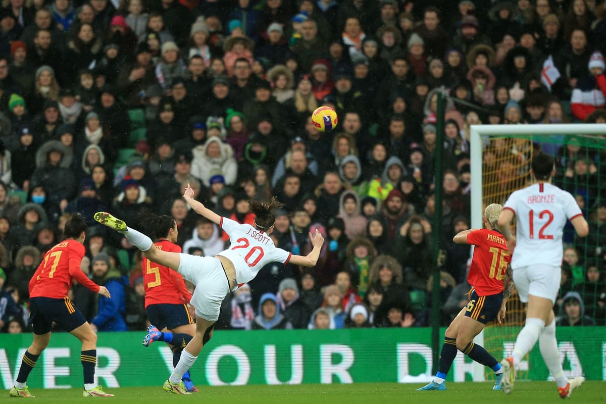 Inglaterra mantiene la presión, Bronze dispara un centro al primer poste y White no puede llegar allí. Rebote cae ante Kirby, pero por alguna razón decide no disparar y la oportunidad se va.