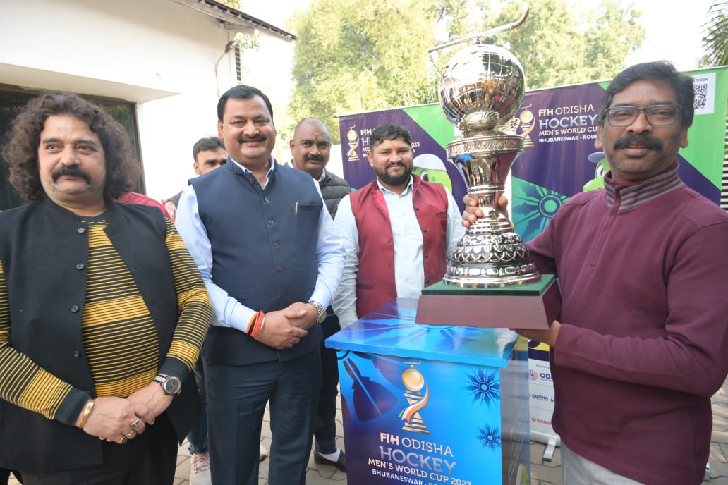 Jharkhand CM presenta el trofeo de la Copa Mundial de Hockey en Ranchi