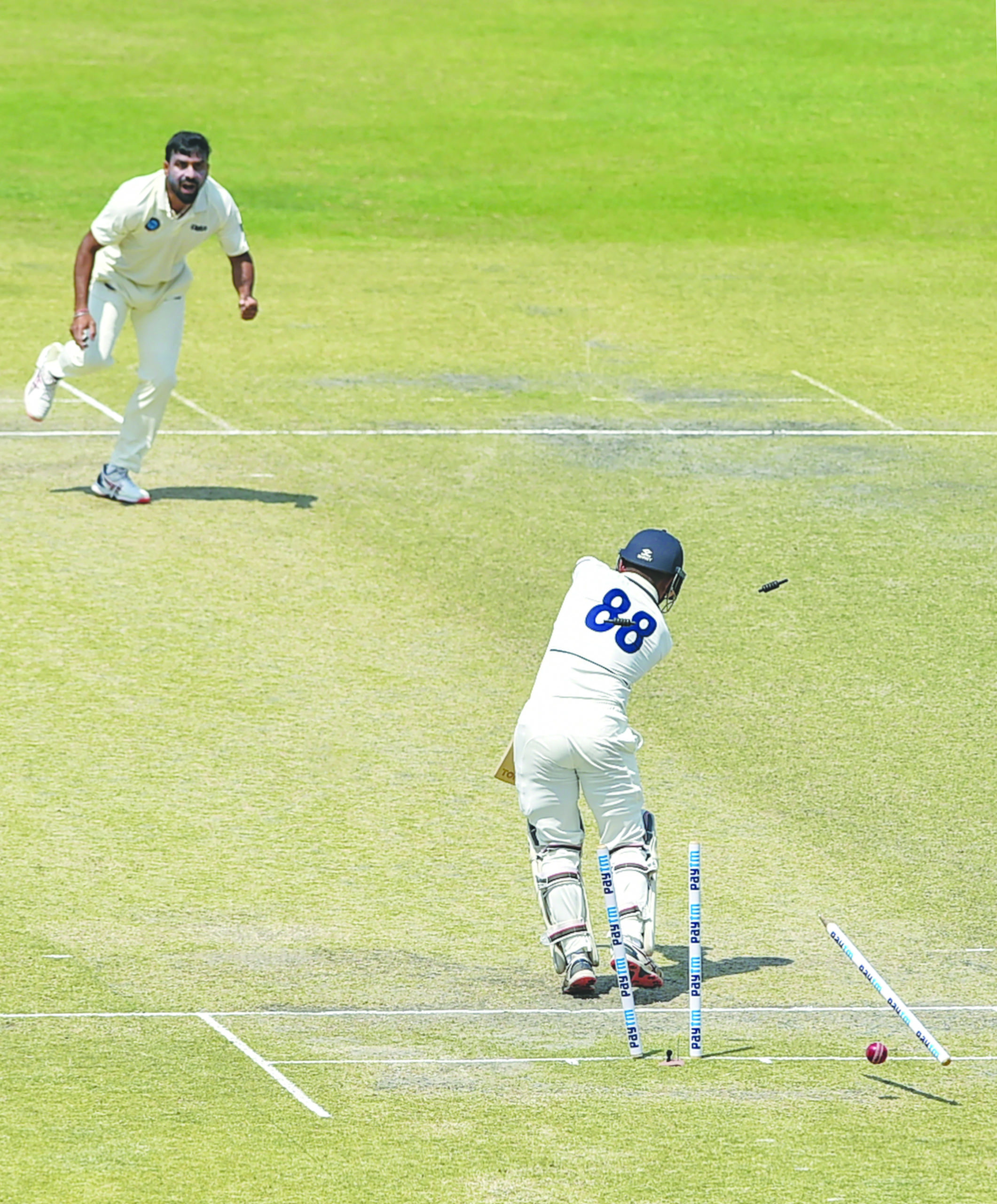 Durante las entradas de Jharkhand, el hilandero del brazo izquierdo Nadeem acertó 22 cuatros y dos seises para su mejor carrera con 177 (de 304 bolas).