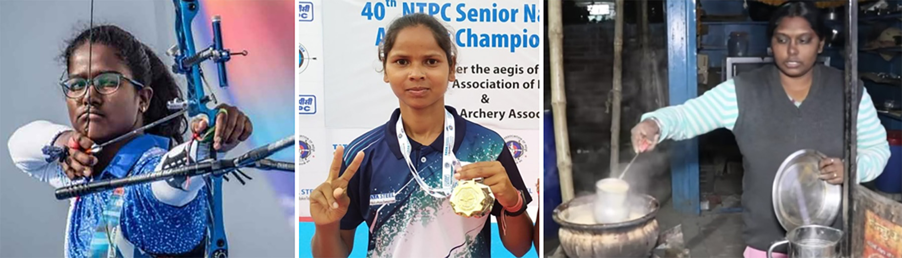 La arquera profesional india Deepika Kumari, de 24 años (nacida el 13 de junio de 1994, actualmente clasificada como la número 2 del mundo, aunque increíble ahora está vendiendo té debido a la crisis financiera. A pesar de los trabajos reservados para los ganadores de medallas deportivas, Deepika, con un récord sin precedentes, a nivel nacional y mundial eventos, no tiene trabajo y vende té para ganarse la vida, una vergüenza no solo para el ámbito deportivo sino también para la India.