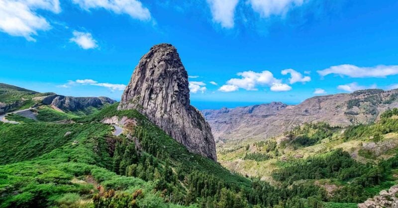Comenzamos nuestro viaje fuera de la España continental en las Islas Canarias, en la segunda isla más pequeña del archipiélago, La Gomera. Con una superficie de 142 millas cuadradas, esta isla logra concentrar mucho en un espacio pequeño. Con una población de sólo 22.000 personas, la isla está dominada por una magnífica meseta central situada a 3.300 pies sobre el nivel del mar. Hasta esta meseta se extiende una red de valles tallados por la erosión hídrica, creando un paisaje espectacular.