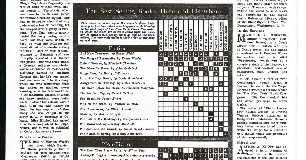 Los listados basados en datos para Today’s Book Review pueden rastrear sus raíces hasta la edición del 9 de agosto de 1942, que incluía un gráfico que muestra cómo se venden los libros en 14 ciudades de todo el país.