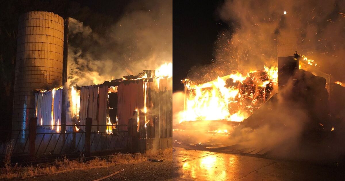 Straw estaba fumando en un granero en la bifurcación española el domingo por la mañana, al que siguió un gran incendio estructural poco después de la medianoche.
