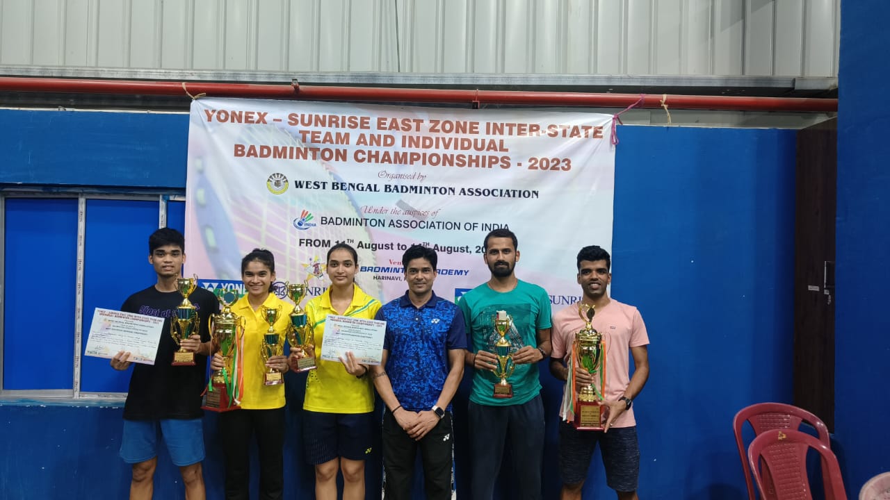 Jamshedpur, 14 de agosto: Los jugadores de Jharkhand tuvieron una actuación estelar en el Campeonato Interestatal de Bádminton Individual y por Equipos de la Zona Este de Yonex Sunrise 2023, ya que ganaron cinco medallas en la final que concluyó hoy en Kolkata Harinavi.