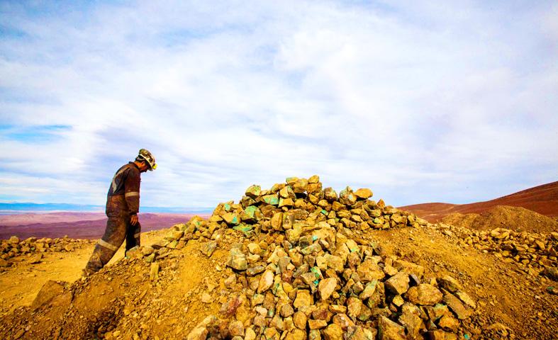 Hugo Morozo selecciona individualmente las rocas que extrae de la pequeña mina de cobre Kiara en las montañas Viguna McKenna en el norte de Chile, que posee algunos de los depósitos de cobre más grandes del mundo.
