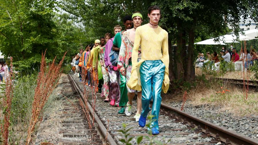 Otras veces, no tanto, era Etro retro, un sutil espectáculo hippie de sudaderas y abrazos de cadera metálicos que atraería a los fanáticos del boom del rock de edad avanzada en lugar de a sus nietos. Pero el espectáculo se organizó de manera lúdica afuera, en una estación de tren abandonada en Milán, y el público estaba libre de máscaras pero socialmente distante. Como resultado, la experiencia parecía fresca, incluso si la ropa no lo era.