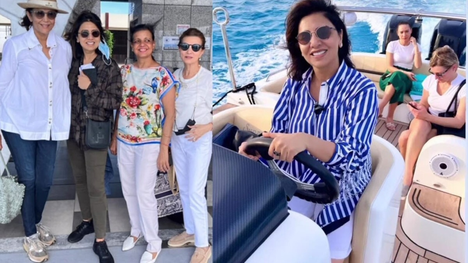 neetu kapoor Actualmente está de vacaciones con sus amigos en un lugar pintoresco. La actriz compartió una nueva foto de sí misma, probando suerte al volante de un yate.