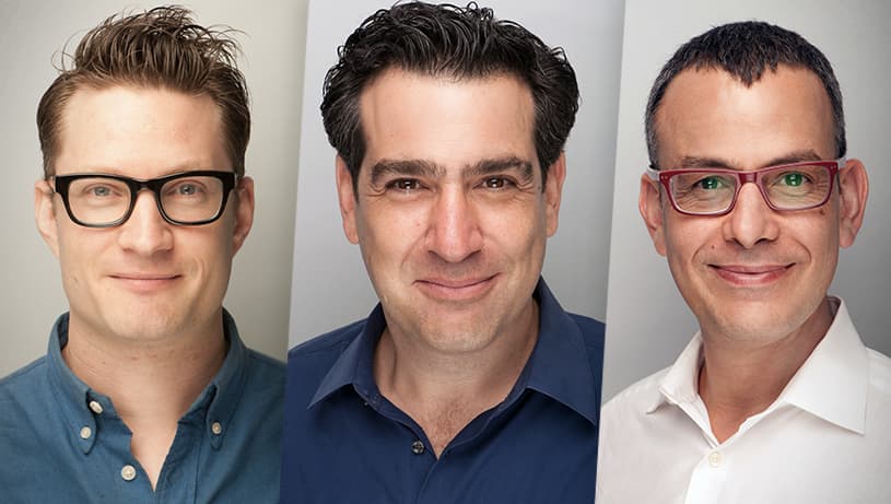 Innovid Tal Chalozin, director de tecnología y cofundador (izquierda), Zvika Netter, director ejecutivo y cofundador (centro), Zack Zigdon, MD, internacional y cofundador (derecha)