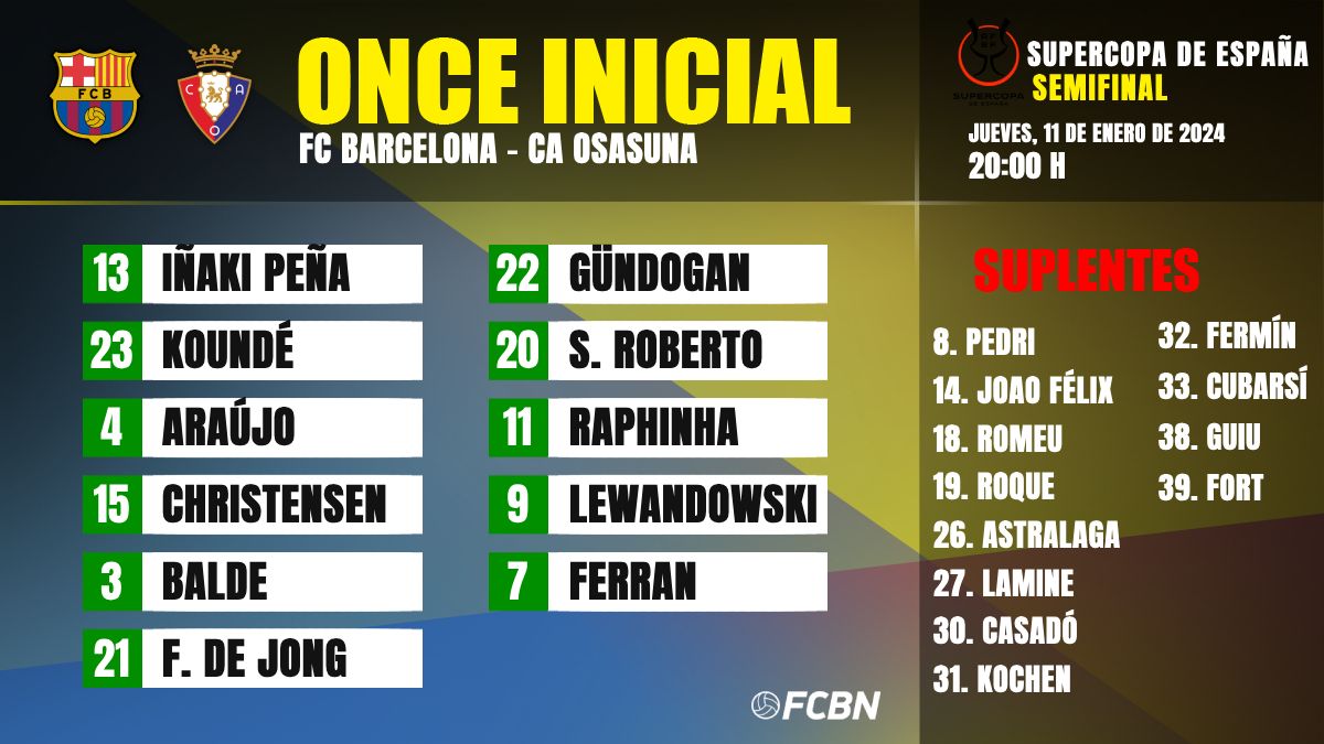 Alineaciones confirmadas para el partido de Barcelona y Osasuna en la Supercopa