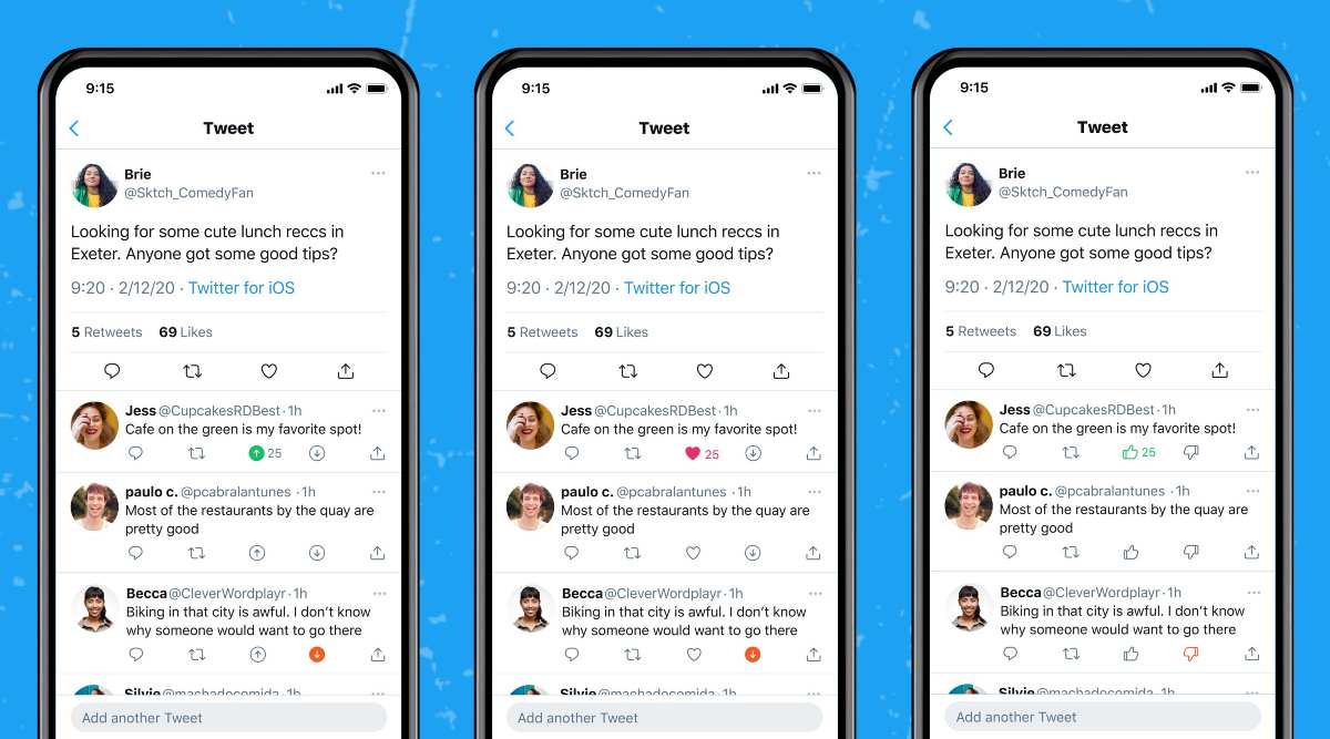 “Algunos de ustedes en iOS pueden ver diferentes opciones para votar a favor o en contra de las respuestas”, dijo Twitter al anunciar la función, y agregó que la plataforma está “probando esto para comprender los tipos de respuestas que encuentra” relevantes en una conversación.