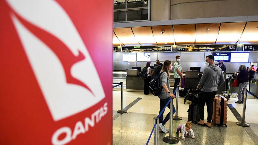Un cartel que muestra los vuelos de Qantas Airways en la sede de la compañía en Sydney © Bloomberg