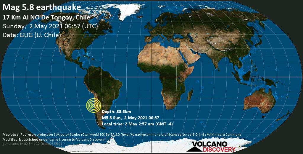 2 de mayo 12:32: La profundidad hipocéntrica se vuelve a calcular de 38,0 a 38,6 km (24 a 24 millas).